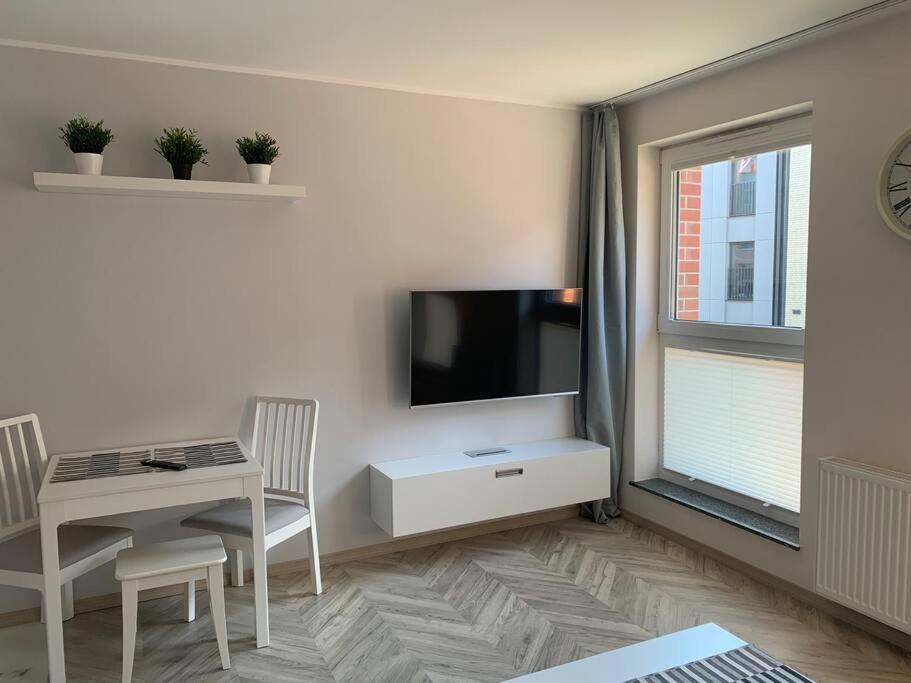 Apartament z 1 sypialnią. The well-equipped kitchenette features a stovetop, a refrigerator, a dishwasher and kitchenware. The apartment offers a washing machine, a tea and coffee maker, a wardrobe, heating, as well as a flat-screen TV with streaming services. The unit offers 1 bed. Apartament - 2 osobowy. Powierzchnia pokoju ok.: 30 mkw.