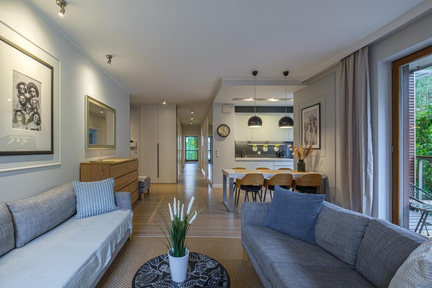 Apartament z 3 sypialniami. Guests will have a special experience as this apartment provides a sauna. Guests can make meals in the kitchen that is fitted with a stovetop, a refrigerator, a dishwasher and kitchenware. The spacious apartment offers a washing machine, a private entrance, a terrace with garden views as well as a shared bathroom boasting a walk-in shower. The unit has 5 beds. Apartament - 6 osobowy. Powierzchnia pokoju ok.: 93 mkw.
