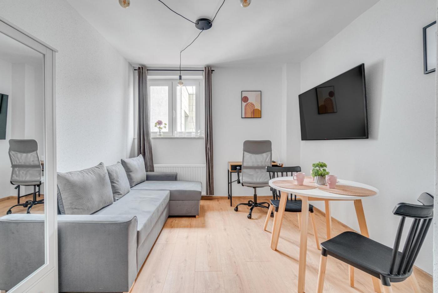 Apartament. Featuring a private entrance, this air-conditioned apartment is comprised of a kitchen, 1 bedroom and 1 bathroom with a shower and a hairdryer. The well-fitted kitchen features a stovetop, a refrigerator, a microwave and a tea and coffee maker. The apartment offers a flat-screen TV, a wardrobe, parquet floors and heating. The unit offers 2 beds. Apartament - 3 osobowy. Powierzchnia pokoju ok.: 25 mkw.