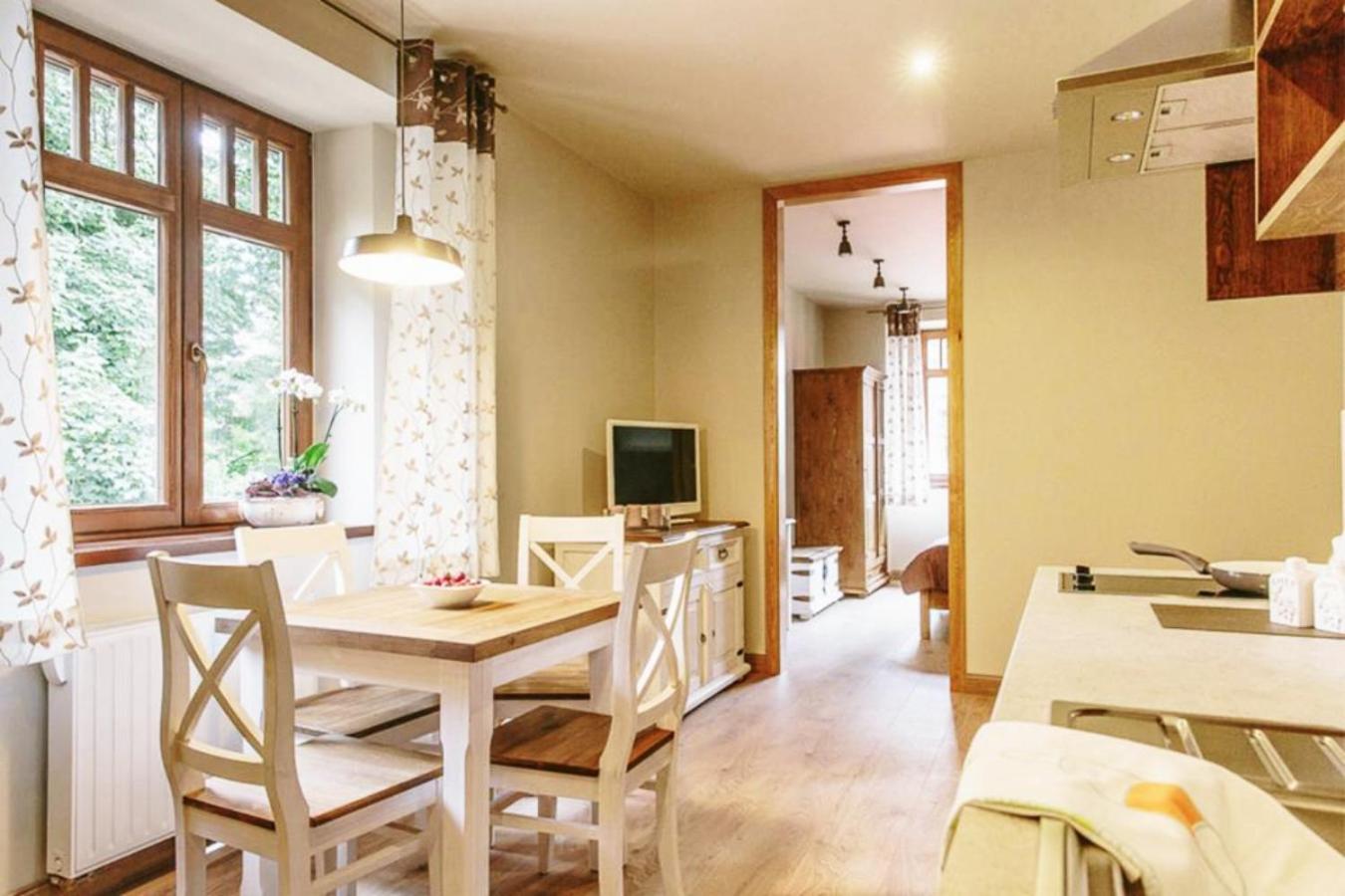The classically furnished apartments are decorated with photos of Polanica-Zdrój and will provide you with a spacious living area with a LED TV, a safe and WiFi. There is a kitchenette with a fridge and coffee set. Featuring a shower, private bathrooms also come with a hairdryer and a bidet, as well as free toiletries. You can enjoy a garden view from the rooms.