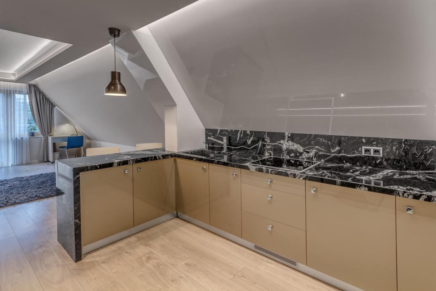 Goście mają bezpłatny dostęp do wspólnego aneksu kuchennego z indukcyjną płytą kuchenną, niezbędnymi przyborami kuchennymi oraz bezpłatną kawą i herbatą. Dodatkowe udogodnienia obejmują sprzęt do prasowania i suszarkę do butów narciarskich.